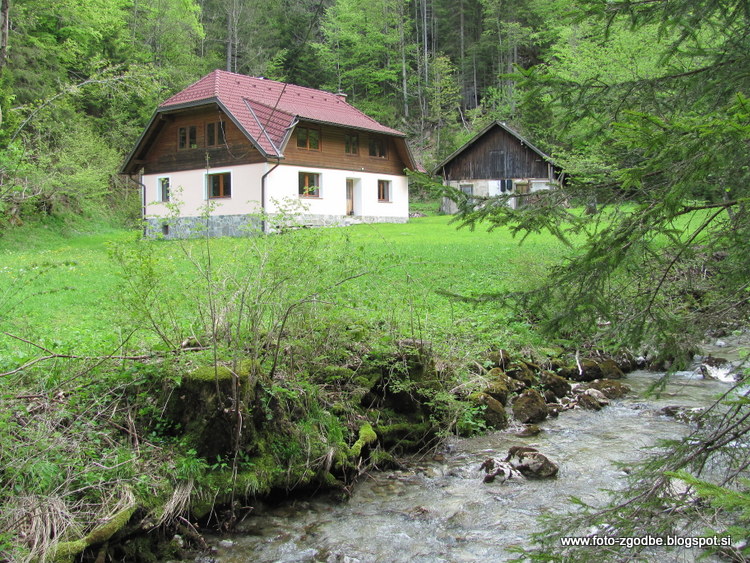 Idilična, obnovljena, pritlična hiška ob Črnem potoku bi lahko bila nekdanja upravna stavba Savskih jam, nisem pa prepričana 😊